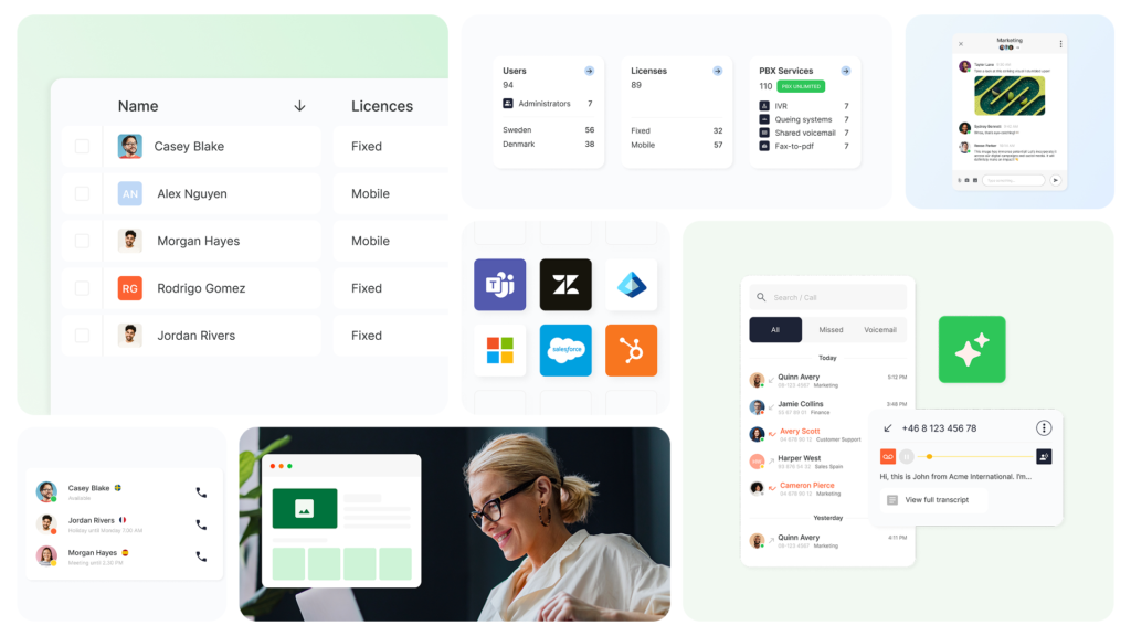 Produktskærmbilleder, miljøbilleder og GIF’er til brug i præsentationer, på nettet, i nyhedsbreve og sociale medier. Hjælper med visuelt at illustrere Telavox’ tjenester og grænseflader.