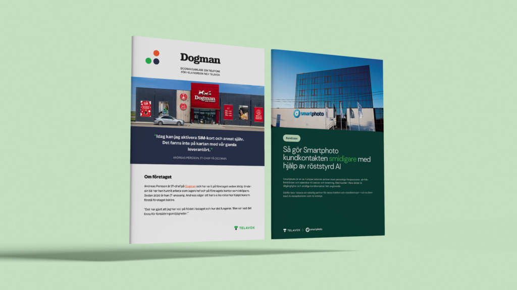 Lad eksisterende kunder fortælle, hvordan Telavox forenkler deres hverdag. Flere cases til forskellige brancher og behov, perfekte til præsentationer, pitches og på nettet.
