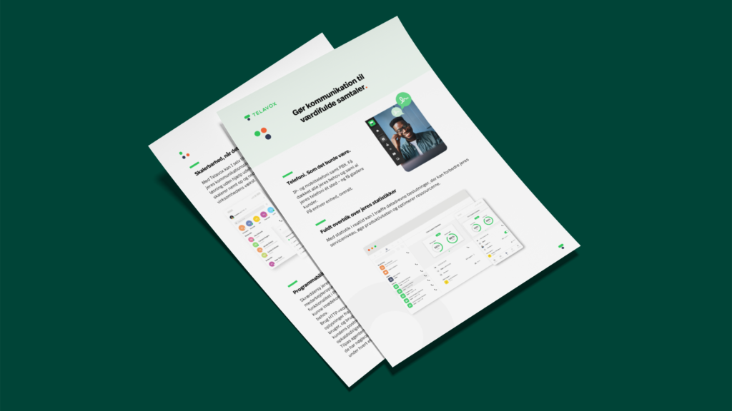 Produktblad, der beskriver funktioner og integrationer i Telavox. Er velegnet til at bruge i gennemgange samt at sende til kunden før eller efter et møde som opsummerende materiale.
