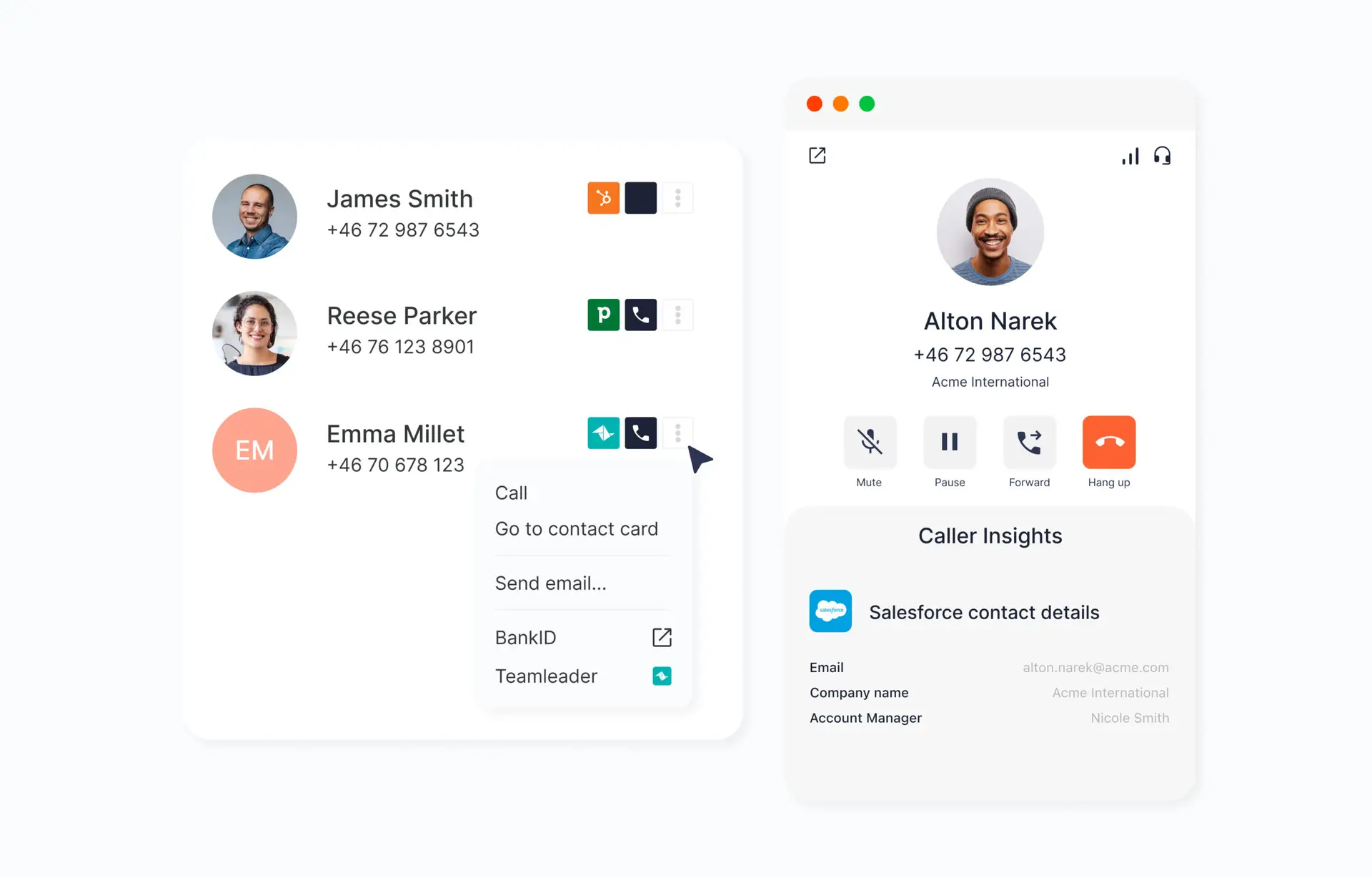 - Log opkald automatisk i jeres CRM til opfølgning eller for at reducere administrativt arbejde.