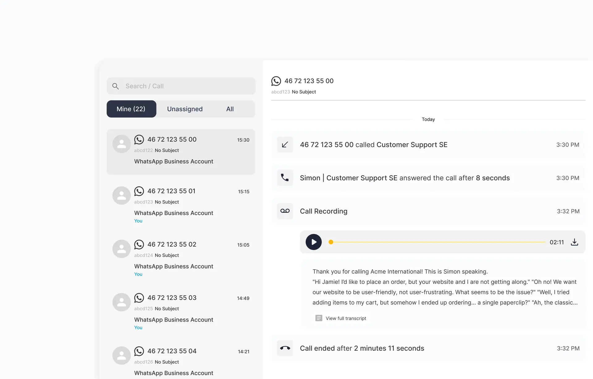 Vores AI-transskribering til sagsbehandling gør kundesupporten mere enkel og effektiv. Samtaler, der kommer ind via jeres kundeservice eller køsystem, omdannes automatisk til tekst, sager tagges og sorteres, og AI foreslår svar, som I kan bruge til feedback. Det betyder mindre manuelt arbejde, hurtigere behandling og en bedre oplevelse for både supportteam og kunder.