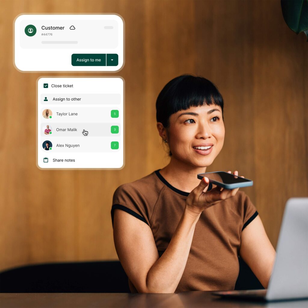 Fördela ärenden till rätt person och hantera ärenden direkt i appen, oavsett om du använder dator eller mobil